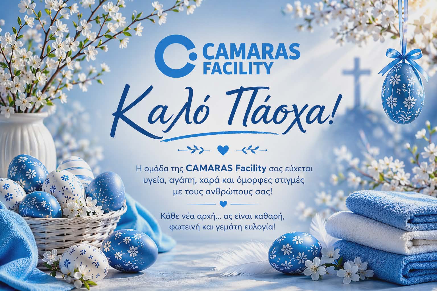 Το Πάσχα είναι μια περίοδος αναγέννησης, ελπίδας και νέων ξεκινημάτων. Στην Camaras Facility, θέλουμε να εκφράσουμε τις πιο θερμές μας ευχές σε όλους εσάς που μας στηρίζετε και μας εμπιστεύεστε καθημερινά.